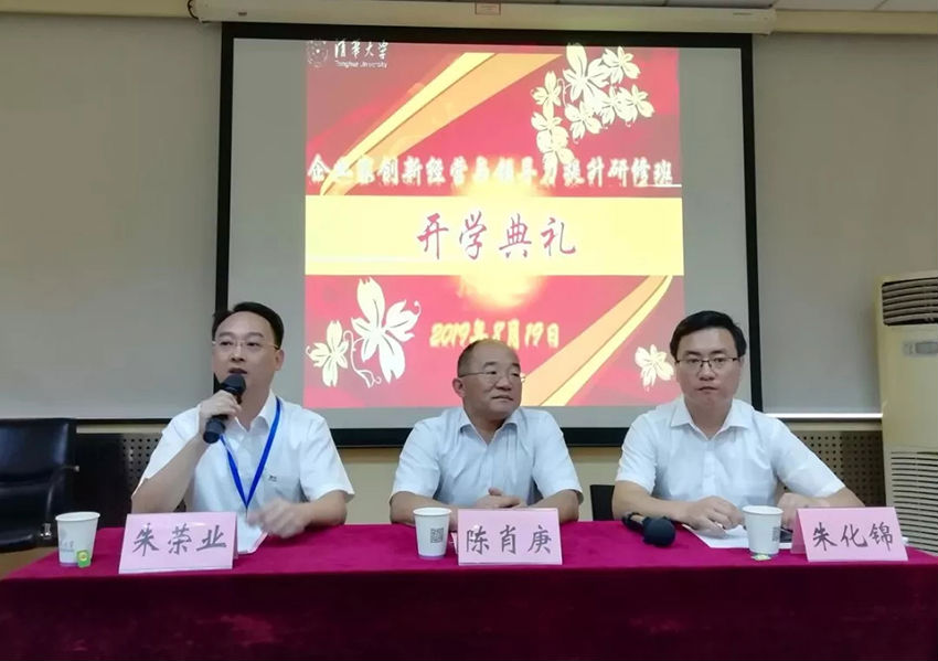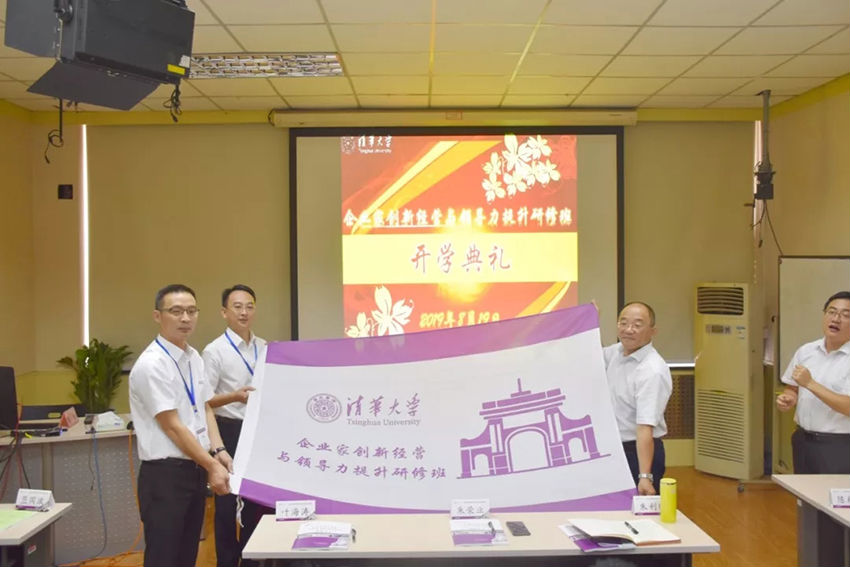 8月19日上午,广东霸王花集团2019年第一期清华大学高级研修班开学典礼在清华大学建筑馆隆重举行。广东霸王花集团执行总裁朱荣业、清华大学继续教育学院院长助理陈肖庚,班主任朱化锦老师以及全体学员参加了开学典礼。