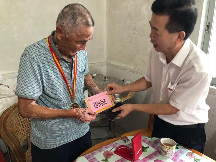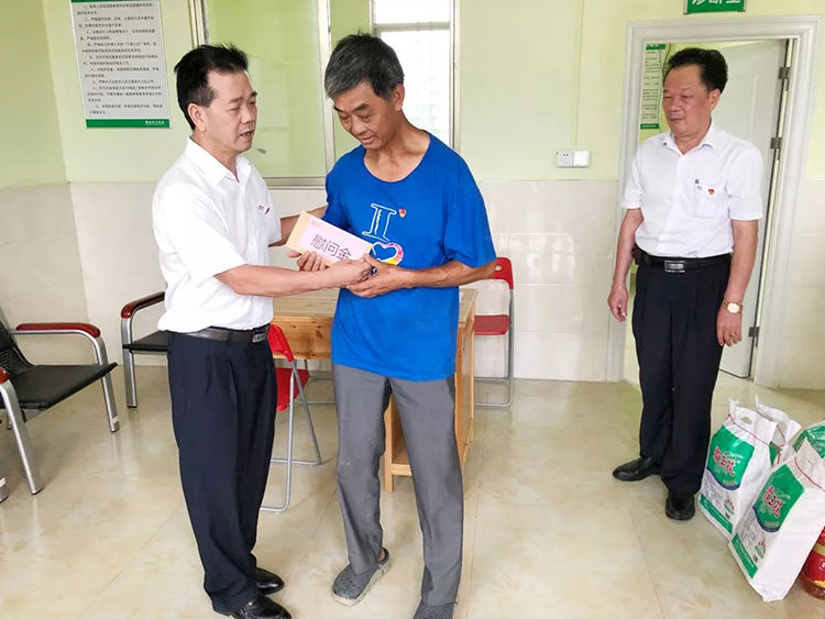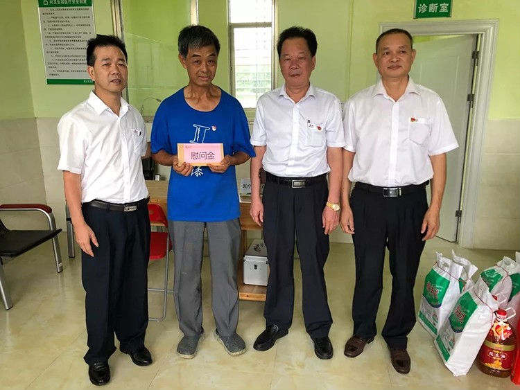 抵达灾区后,罗友望同志和党委委员一行先后走访了周观仁、周国富等受灾老党员,慰问中,罗友望同志和老党员亲切交谈,详细询问他们受灾情况,了解他们的家庭、生产、生活、健康等情况,捐赠了米粉、食用油等物资并向他们送上慰问金,鼓励他们在当地党委的领导下,勇于克服困难,坚定信心,积极面对生活,加快复产重建。老党员表示非常感谢霸王花人的暖情关怀,会把党的关怀和温暖传递到受灾党员和群众中,会坚定信心,重建家园,永远跟党走。